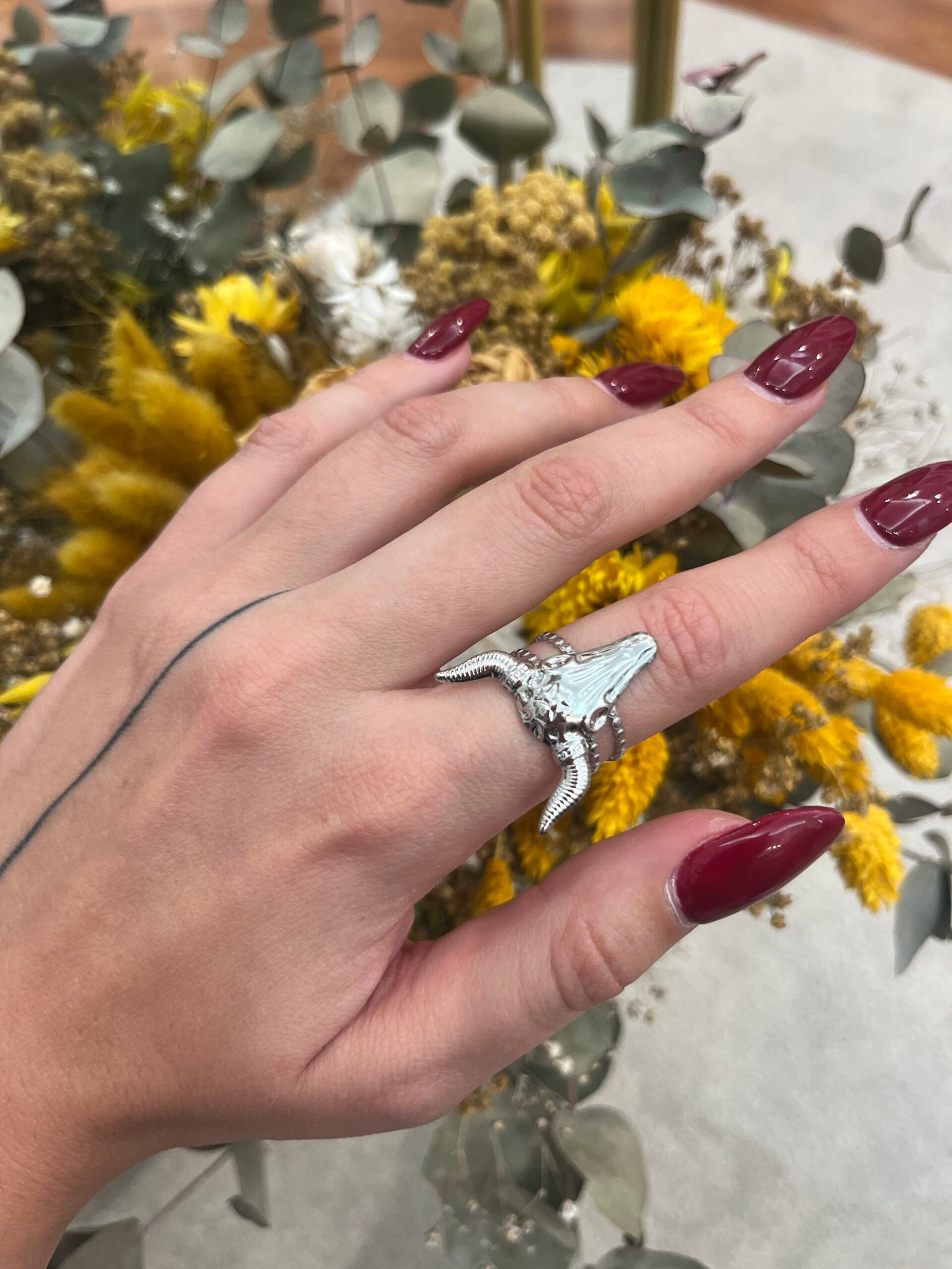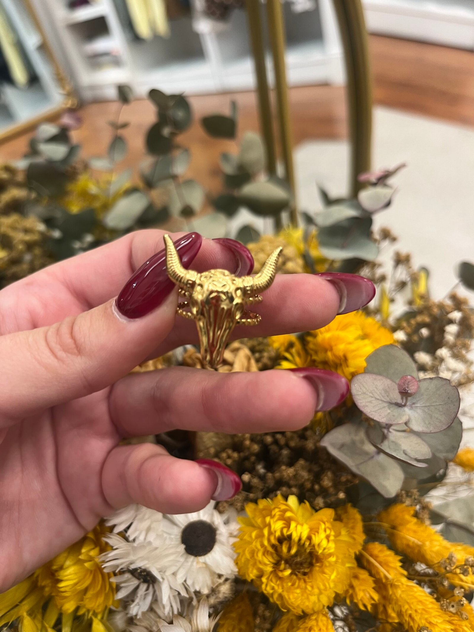 Anillo ajustable de acero inoxidable dorado con diseño de cabeza de búfalo, símbolo de fuerza y carácter. De líneas definidas y acabado duradero de alta calidad.