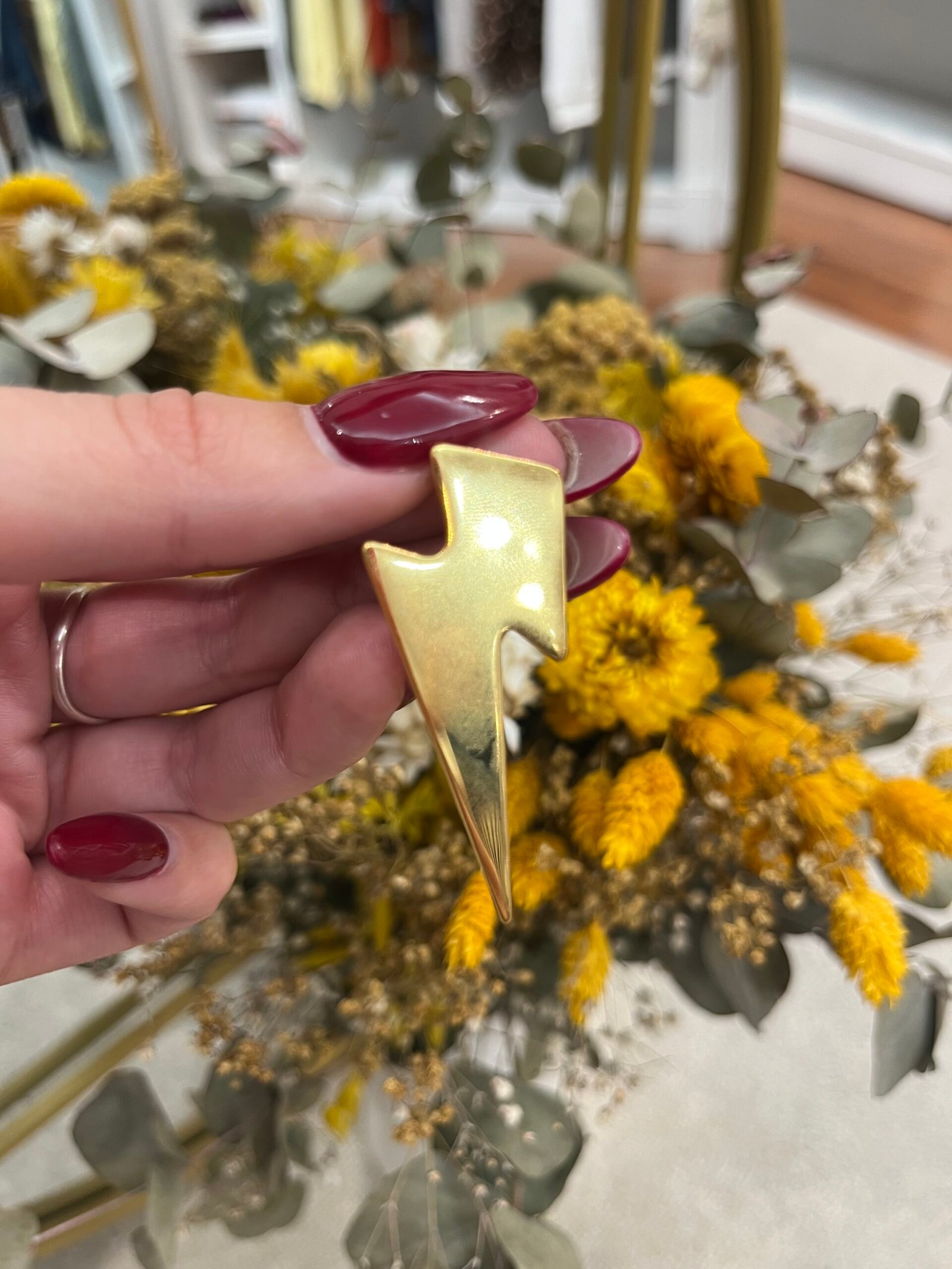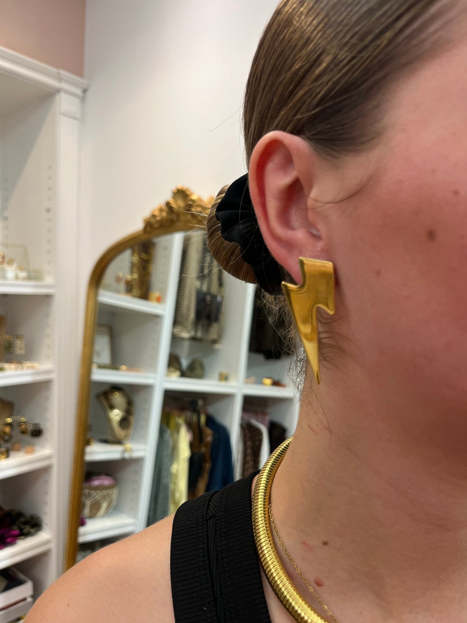Pendientes de acero inoxidable dorado con diseño en forma de rayo, símbolo de fuerza y estilo. Una pieza atrevida y sofisticada que ilumina cualquier look con un toque actual.